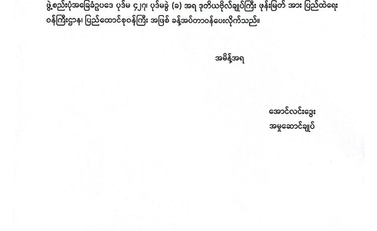 ပြည်ထောင်စုသမ္မတမြန်မာနိုင်ငံတော် အမျိုးသားကာကွယ်ရေးနှင့်လုံခြုံရေးကောင်စီရုံး အမိန့်အမှတ်၊ ၄/ ၂၀၂၆ ၁၃၈၇ ခုနှစ်၊ တပို့တွ...