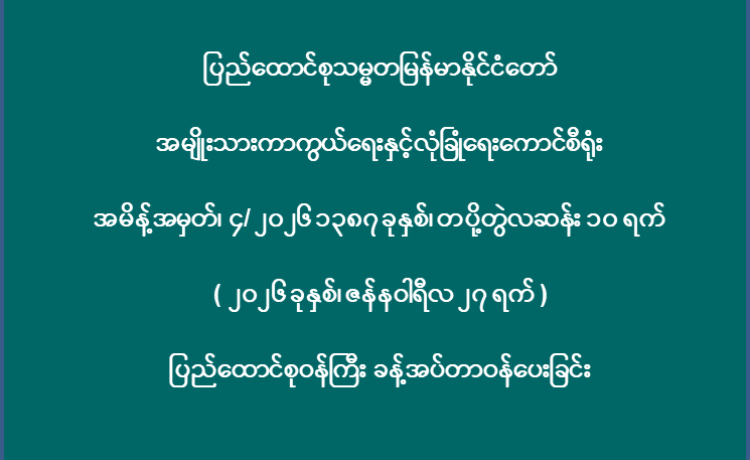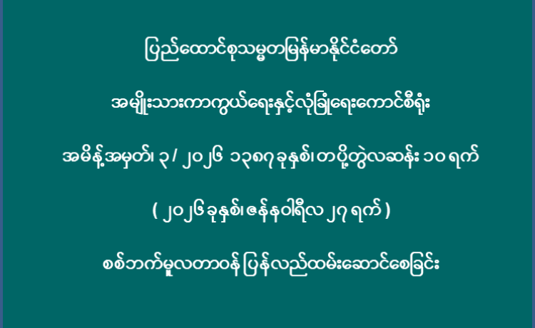 ပြည်ထောင်စုရွေးကောက်ပွဲကော်မရှင် ကြေညာချက်အမှတ် ( ၂၄ / ၂၀၂၆ ) ၁၃၈၇ ခုနှစ်၊ တပို့တွဲလဆန်း  ၁၁  ရက် ( ၂၀၂၆ ခုနှစ်၊ ဇန်န...