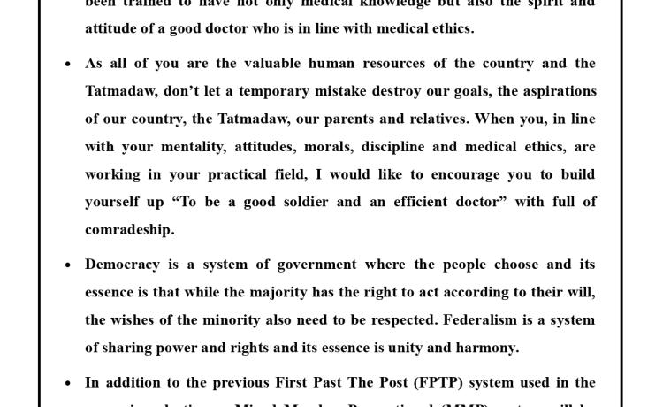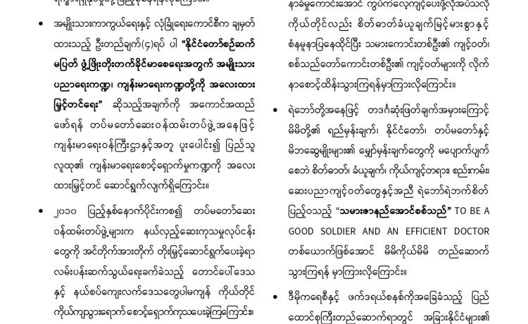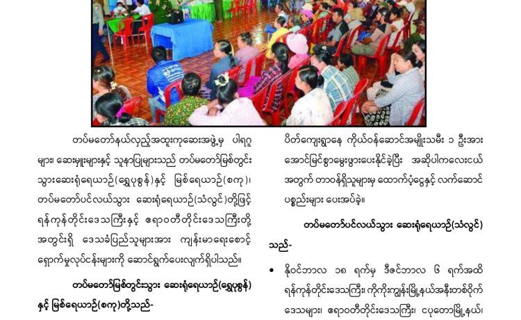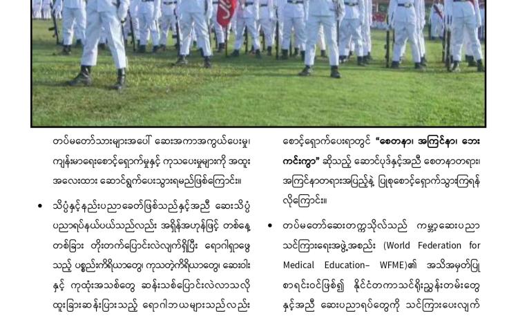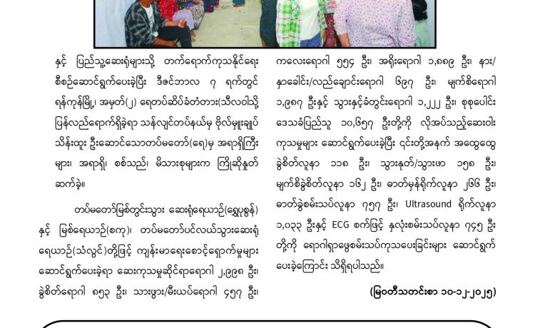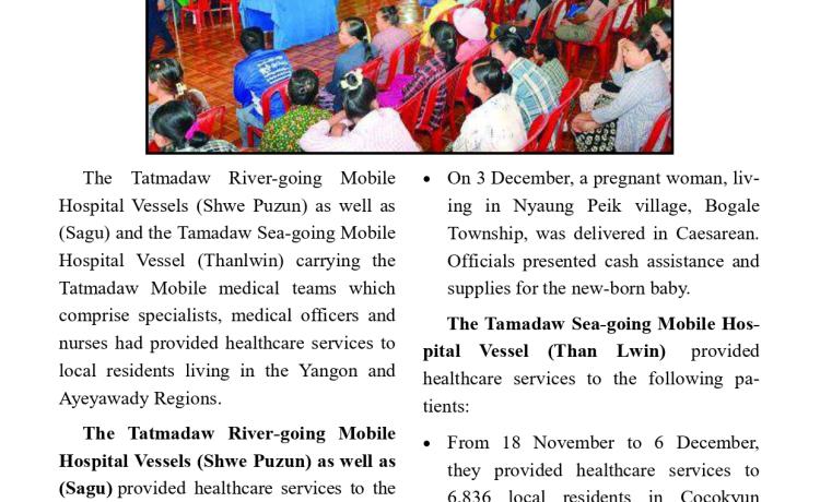 တပ်မတော် ပင်လယ်သွားဆေးရုံရေယာဉ်(သံလွင်)မှ တပ်မတော်နယ်လှည့် အထူးကုဆေးအဖွဲ့ ကိုကိုးကျွန်းမြို့ရှိ ဒေသခ