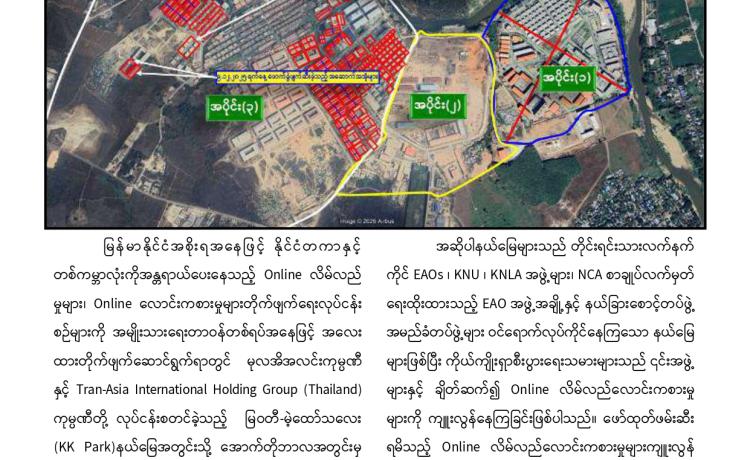 KK Park နယ်မြေအတွင်းရှိ အွန်လိုင်းလိမ်လည်မှုနှင့် လောင်းကစားမှုများကျူးလွန်ရာတွင် အသုံးပြုသည့် အဆောက