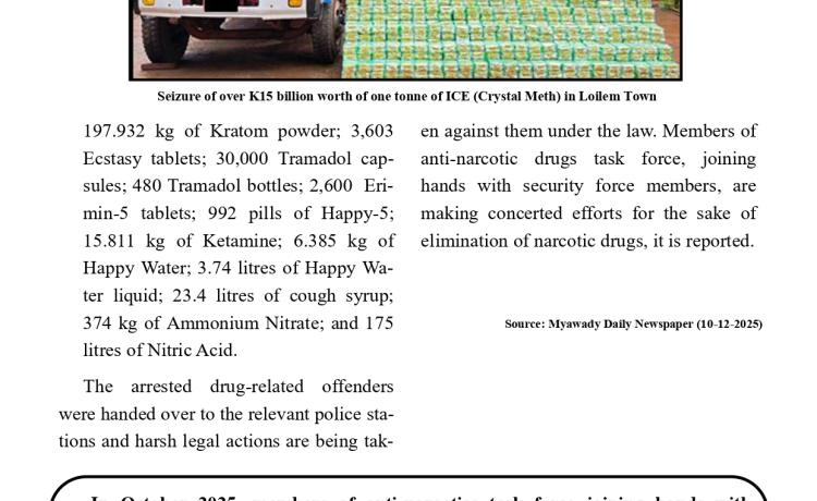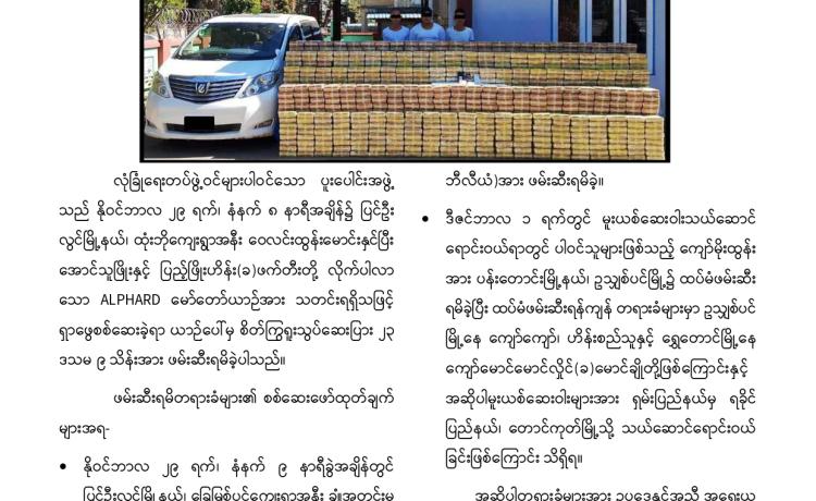 တာချီလိတ်နှင့် မိုင်းတုံမြို့နယ်တို့တွင် ဖမ်းဆီးရမိသည့် ထိုင်းနိုင်ငံမှ မူးယစ်ဆေးဝါးအမှုဖြင့် အလိုရှိတရားခံပြေး ၃ ဦးနှင့...