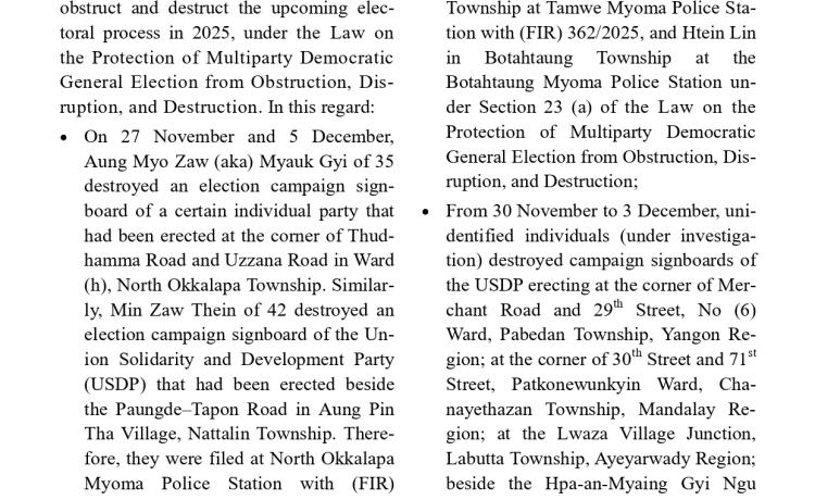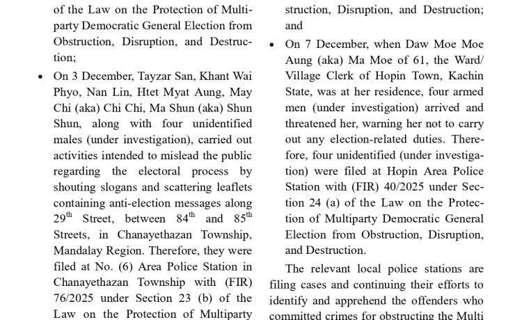 အကြမ်းဖက်အုပ်စုအဖြစ် ကြေညာထားသော CRPH၊ NUG နှင့် ၎င်းတို့၏ လက်ဝေခံများ၏ လှုံ့ဆော်၊ ဝါဒဖြန့်ခြင်းများအား လိုက်ပါလုပ်ဆောင်...