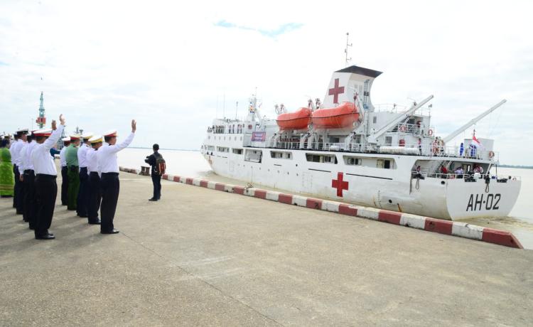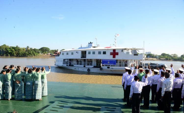 တပ်မတော်မြစ်တွင်းသွားဆေးရုံရေယာဉ်(ရွှေပုဇွန်)နှင့် မြစ်ရေယာဉ်(စကု)၊ တပ်မတော်ပင်လယ်သွားဆေးရုံရေယာဉ်(သံလွင်)တို့ ဧရာဝတီတို...