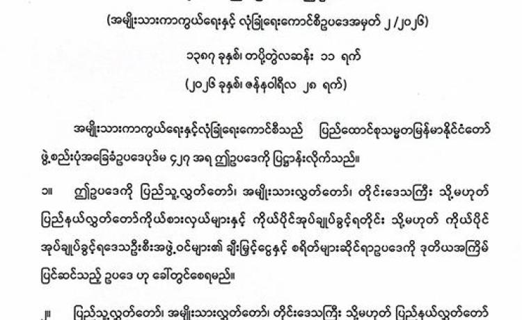 ပြည်သူ့လွှတ်တော်၊ အမျိုးသားလွှတ်တော်၊ တိုင်းဒေသကြီး သို့မဟုတ် ပြည်နယ်လွှတ်တော် ကိုယ်စားလှယ်များနှင့် ကိုယ်ပိုင်အုပ်ချုပ်...