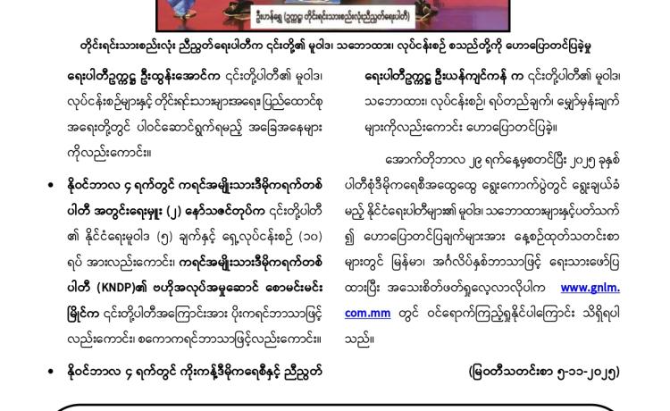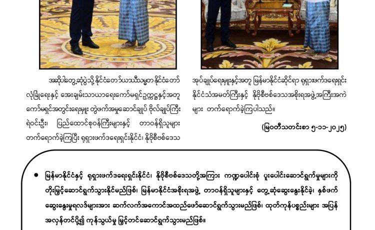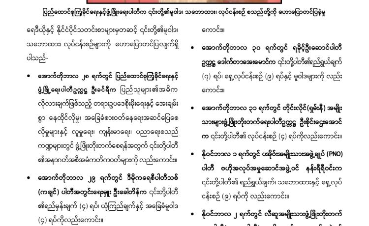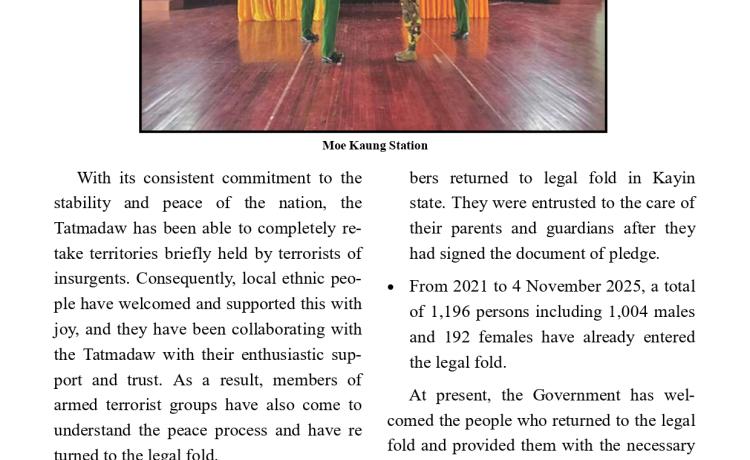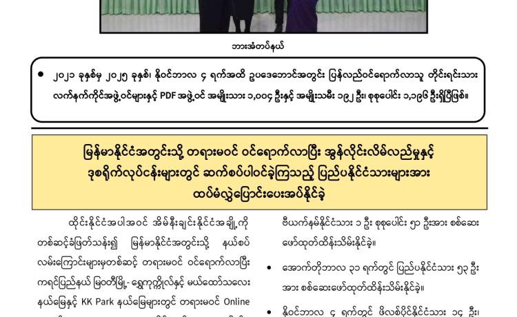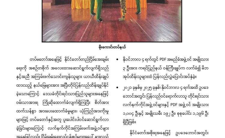နိုင်ငံတော်နှင့် တပ်မတော်၏ ငြိမ်းချမ်းရေးလုပ်ငန်းစဉ်များကို လက်ခံယုံကြည်သည့် MDY-PDF အဖွဲ့ဝင် ၉ ဦး ဥ