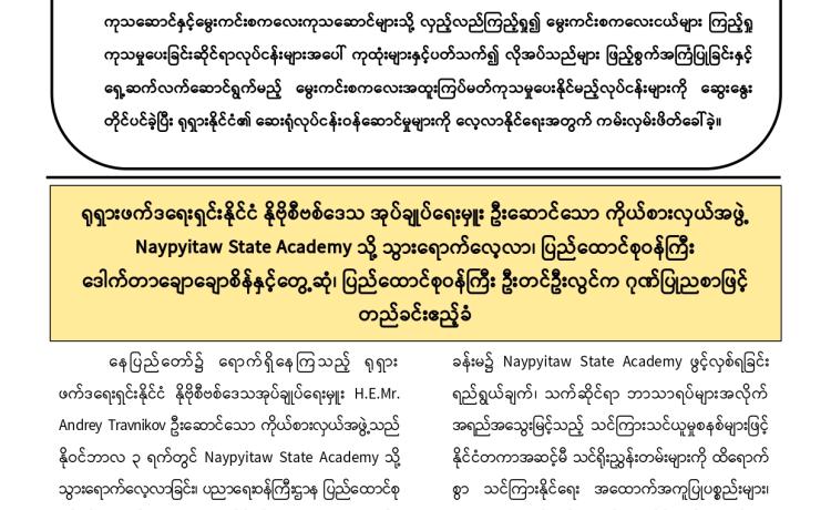 နောင်ချိုမြို့၊ အမှတ်(၁)အခြေခံပညာအထက်တန်းကျောင်း၌ ကျောင်းအပ်လက်ခံခြင်းနှင့် ယာယီဆေးရုံ၌ ကျန်းမာရေးစေ