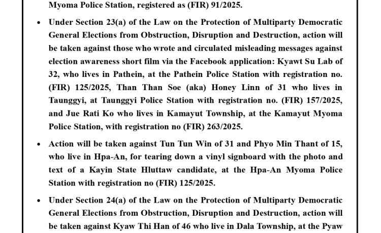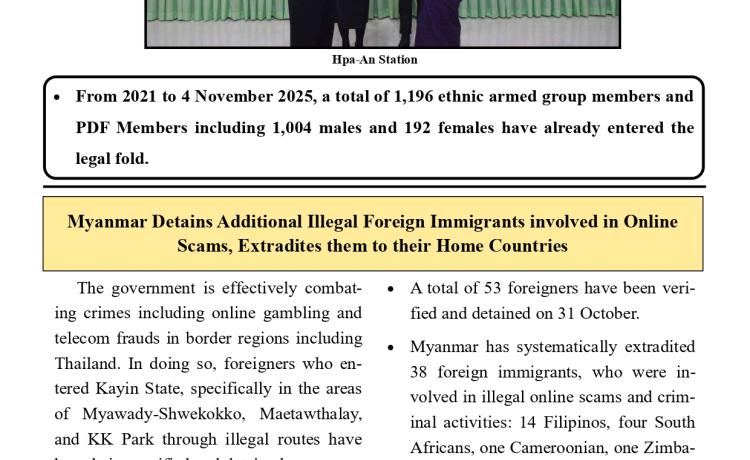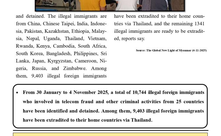 မြန်မာနိုင်ငံအတွင်းသို့ တရားမဝင် ဝင်ရောက်လာသည့် ပြည်ပနိုင်ငံသား ၁၈ ဦး ထပ်မံစစ်ဆေး ဖော်ထုတ်ထိန်းသိမ်းခဲ့ နေပြည်တော်၊ နို...