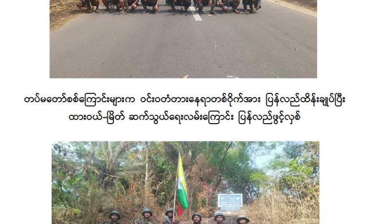 တပ်မတော်စစ်ကြောင်းများက အကြမ်းဖက်သောင်းကျန်းသူများ ယာယီစိုးမိုးထားသည့် ဝင်းဝတံတားအား ပြန်လည်ထိန်းချုပ်ကာ ထားဝယ်-မြိတ်သွာ...