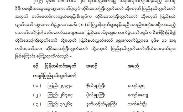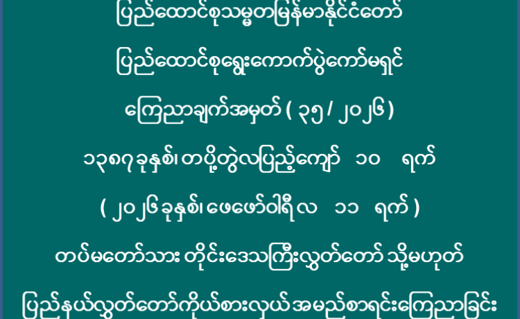 ပြည်ထောင်စုသမ္မတမြန်မာနိုင်ငံတော် ပြည်ထောင်စုရွေးကောက်ပွဲကော်မရှင် ကြေညာချက်အမှတ် ( ၃၅ / ၂၀၂၆ ) ၁၃၈၇ ခုနှစ်၊ တပို့တွဲလပြ...