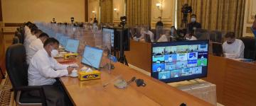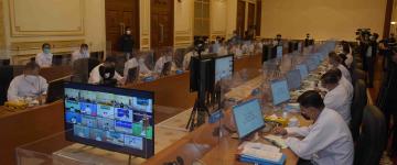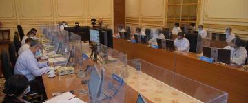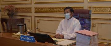 ပြည်မြို့၊ သီရိခေတ္တရာမြို့တော်ခန်းမ၌ ကိုဗစ်-၁၉ ရောဂါကာကွယ်ဆေးထိုးနှံနေစဉ် အကြမ်