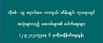 တိုင်းဒေသကြီးနှင့် ပြည်နယ်အသီးသီးရှိ ပြည်သူ့ဆေးရုံများ၊ တပ်မတော်ဆေးရုံများ၊ ကျန်