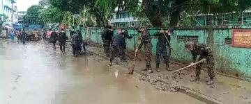 မိုးသည်းထန်စွာရွာသွန်း၍ ရေကြီးရေလျှံမှုဖြစ်ပွားသည့်နေရာများ၌ ကူညီကယ်ဆယ်ရေး လုပ်င