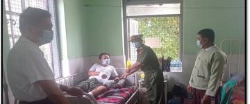 လက်လုပ်မိုင်းပေါက်ကွဲမှုကြောင့် ထိခိုက်ဒဏ်ရာရရှိပြီး ဆေးရုံတက်ရောက်ကုသမှုခံယူ နေ