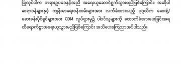နိုင်ငံတော်တည်ငြိမ်အေးချမ်းမှုကို ပျက်ပြားစေရန်ရည်ရွယ်ချက်ဖြင့် CDM လှုပ်ရှားမှု