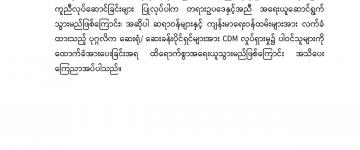နိုင်ငံတော်တည်ငြိမ်အေးချမ်းမှုကို ပျက်ပြားစေရန်ရည်ရွယ်ချက်ဖြင့် CDM လှုပ်ရှားမှု