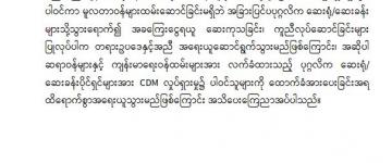 နိုင်ငံတော်တည်ငြိမ်အေးချမ်းမှုကို ပျက်ပြားစေရန်ရည်ရွယ်ချက်ဖြင့် CDM လှုပ်ရှားမှ