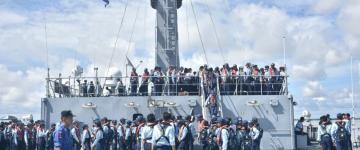 အခြေခံနှင့် တန်းမြင့်လေကြောင်းလူငယ်သင်တန်းများမှ သင်တန်းသားများ စစ်ရေယာဉ်(မုတ္တမ