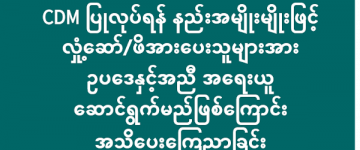 CDM ပြုလုပ်ရန် နည်းအမျိုးမျိုးဖြင့် လှုံ့ဆော်/ဖိအားပေးသူများအား ဥပဒေနှင့်အညီ အရေ