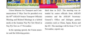 နိုင်ငံတော်ဝန်ကြီးချုပ် ဦးညိုစော (၃၁)ကြိမ်မြောက် အာဆီယံပို့ဆောင်ရေးဝန်ကြီးများ