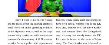 KK Park နယ်မြေအတွင်း Online လိမ်လည်မှုနှင့် လောင်းကစားမှုများကျူးလွန်ရာတွင် အသုံ