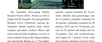 တပ်မတော် ပင်လယ်သွားဆေရုံရေယာဉ်(သံလွင်)မှ တပ်မတော်နယ်လှည့်အထူးကုဆေးအဖွဲ့ ဟိုင်းကြ