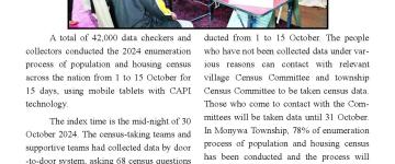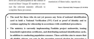 ဧရာဝတီတိုင်းဒေသကြီး၌ သန်းခေါင်စာရင်းကောက်ယူရာတွင် စစ်မှုထမ်းကိစ္စများ ကိုပါ မေးမ