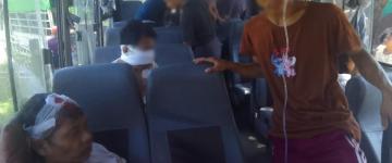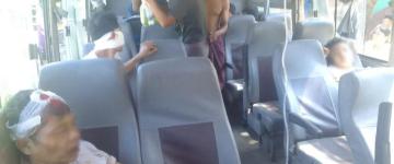 အမ်း-ပဒါန်းသွား ကားလမ်းပေါ်၌ ဖြတ်သန်းသွားလာလျက်ရှိသော အရပ်သားပြည်သူ များ စီးနင်း