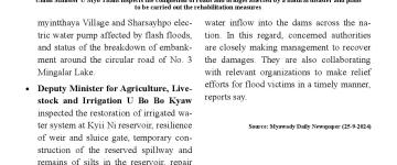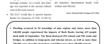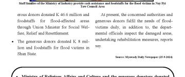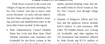 ရေဘေးသင့်ပြည်သူများအတွက် အလှူငွေဆက်လက်လက်ခံမည့်အစီအစဉ် အသိပေးကြေညာခြင်း