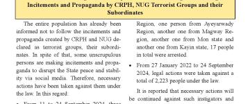 အကြမ်းဖက်အုပ်စုအဖြစ် ကြေညာထားသော CRPH၊ NUG နှင့် ၎င်းတို့၏ လက်ဝေခံများ၏ လှုံ့ဆော