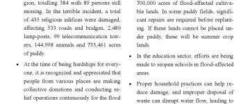 ရေပြန်လည်ကျဆင်းသွားသည့်နေရာများ၌ လိုအပ်သည့်သန့်ရှင်းရေးလုပ်ငန်းများနှင့် ကျန်း