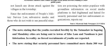 ဘိုကလေးမြို့နယ်တွင် လူငယ် ၄၀ ကျော် အဓမ္မစစ်သားစုဆောင်းခံရသည်ဟု မဟုတ်မမှန်လုပ်ကြံ