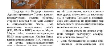 နိုင်ငံတော်ကာကွယ်ရေးနှင့် လုံခြုံရေးတာဝန်များကို စွမ်းစွမ်းတမံ ထမ်းဆောင်လျက်ရှိသ