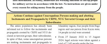 အကြမ်းဖက်အုပ်စုအဖြစ် ကြေညာထားသော CRPH၊ NUG နှင့် ၎င်းတို့၏ လက်ဝေခံများ၏ လှုံ့ဆော