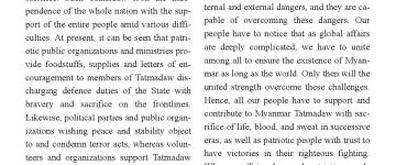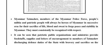 နိုင်ငံတော်ကာကွယ်ရေးနှင့် လုံခြုံရေးတာဝန်များကို စွမ်းစွမ်းတမံ ထမ်းဆောင်လျက်ရှိသ