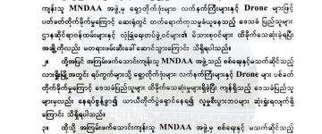MNDAA အကြမ်းဖက် သောင်းကျန်းသူအဖွဲ့၏ အကြမ်းဖက်လုပ်ရပ်များကို လုံးဝ လက်မခံကြောင်