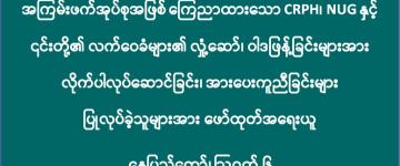 အကြမ်းဖက်အုပ်စုအဖြစ် ကြေညာထားသော CRPH၊ NUG နှင့် ၎င်းတို့၏ လက်ဝေခံများ၏ လှုံ့ဆော