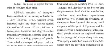 အကြမ်းဖက်အုပ်စုအဖြစ် ကြေညာထားသော CRPH၊ NUG နှင့် ၎င်းတို့၏ လက်ဝေခံများ၏ လှုံ့ဆော