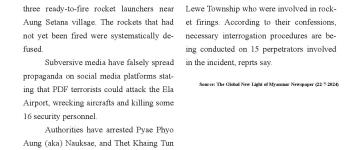 နေပြည်တော်ကောင်စီနယ်မြေ၊ လယ်ဝေးမြို့နယ်အတွင်းသို့ ရှော့တိုက်ဒုံးများဖြင့် နှောင့