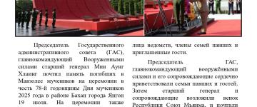 တရုတ်ပြည်သူ့လွတ်မြောက်ရေးတပ်မတော်တည်ထောင်သည့်(၉၈)နှစ်မြောက် အခမ်းအနားကျင်းပ နေပ