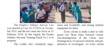 ပြည်သူ့စစ်မှုထမ်းသင်တန်းအမှတ်စဉ်(၂)သင်တန်းဖွင့်ပွဲများအား တိုင်းစစ်ဌာနချုပ်အသီးသ