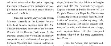 နိုင်ငံတော်ကာကွယ်ရေးနှင့် လုံခြုံရေးတာဝန်များကို စွမ်းစွမ်းတမံ ထမ်းဆောင်လျက်ရှိသ