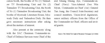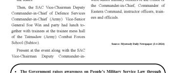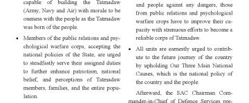 နိုင်ငံတော်ကာကွယ်ရေးနှင့် လုံခြုံရေးတာဝန်များကို စွမ်းစွမ်းတမံ ထမ်းဆောင်လျက်ရှိသ