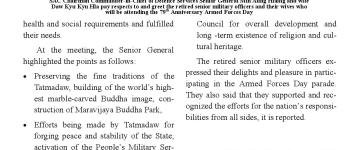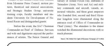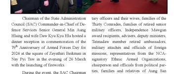 (၇၉)နှစ်မြောက် တပ်မတော်နေ့အထိမ်းအမှတ် အကြိုဂုဏ်ပြုညစာစားပွဲ အခမ်းအနားကျင်းပ နေပ
