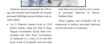 နိုင်ငံတော်ကာကွယ်ရေးနှင့် လုံခြုံရေးတာဝန်များကို စွမ်းစွမ်းတမံ ထမ်းဆောင်လျက်ရှိသ