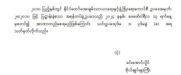 ပြည်ထောင်စုသမ္မတမြန်မာနိုင်ငံတော် ပြည်ထောင်စုအစိုးရအဖွဲ့ အမိန့်ကြော်ငြာစာအမှတ်၊