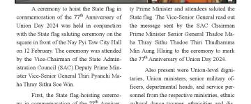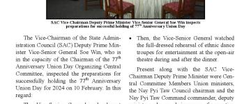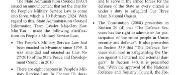 နိုင်ငံတော် ကာကွယ်ရေးနှင့် လုံခြုံရေးတာဝန်များကို စွမ်းစွမ်းတမံထမ်းဆောင် လျက်ရှိ