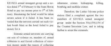ကောလင်းမြို့ရှိ ရပ်ကွက်များကို မီးရှို့ဖျက်ဆီးခြင်း၊ ပြည်သူများ၏ အဖိုးတန် ပစ္စည်