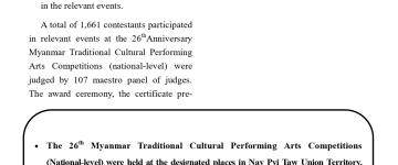 (၂၆)ကြိမ်မြောက် မြန်မာ့ရိုးရာယဉ်ကျေးမှု အဆို၊ အက၊ အရေး၊ အတီးပြိုင်ပွဲ ဂုဏ်ပြုမှတ