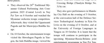 မြန်မာ-ရုရှား-ဘယ်လာရုစ် (၃) နိုင်ငံပူးပေါင်းဖျော်ဖြေတင်ဆက်မှုအခမ်းအနား