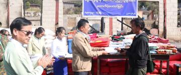 ဟိုပုံးမြို့နယ်၊ စံဖူးကျေးရွာရှိ မီးဘေးသင့်ပြည်သူများအား ထောက်ပံ့ငွေနှင့် လူသုံး